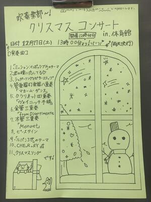吹奏楽部によるクリスマスコンサートが行われました。これまでにないくらい多くの観客動員ということ、さらに、ノリの良い生徒が多く、クリスマスを先度って会場全体で盛り上がりました。