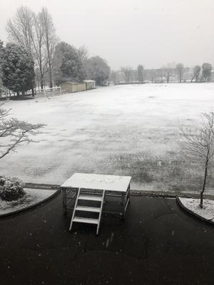 予報よりも降っているような。学校が白銀の世界に。