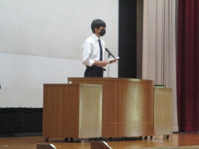 予定者数を大きく上回る候補者が立候補し、令和3年度生徒会本部役員選挙が本格的に始まりました。今日は昼の放送での選挙活動の様子です。一言一句に重みがあり、緊張感ある演説になっています。