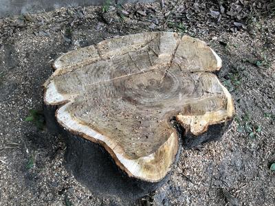 また、昨日は、39回目の開校記念日でした。翌日の今日は、残念ながら寿命を迎えた校庭の桜の木を伐採していただきました。年輪が分かるかと思いましたが、よく見えませんね。畑の作物は元気に育っています。