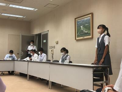 本校からこの夏に3名の生徒が関東・全国大会に出場します(した)。本日は市の主催で会が行われ、1名の生徒が参加しました。市長と教育長から「チャンスを活かしてきてほしい」「県大会を超えることの難しさと素晴らしさ」「市内8,000人の生徒の代表」など、激励の言葉をいただきました。
