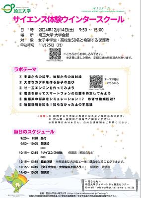 サイエンス体験ウインタースクール 投稿: 教頭 (2024/11/28) 埼玉大学よりお知らせが届きましたので掲載いたします。 05_【フライヤー】サイエンス体験ウインタースクール.pdf06_【フライヤー】製薬会社の研究者探訪.pdf -