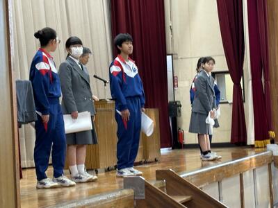 書き初め展、郷土を描く美術展、剣道部女子の賞状伝達がありました。おめでとうございます。