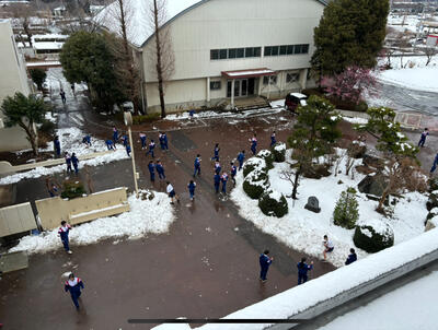 昼休みは小学生に負けないくらい賑やかに雪遊びで楽しむ生徒達。やるべき時はしっかりとやる。楽しむ時はとことん楽しむ。本校の生徒のよいところです。