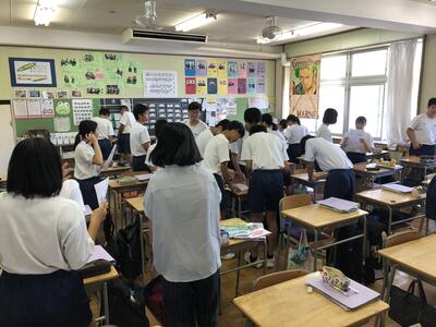 21日から始まる新人大会に向け、3年生から応援メッセージが披露されました。部活ごとにカラーが出た内容でした。2年生中心に頑張ってください。