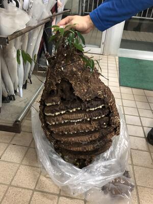 業者さん曰く、キイロスズメバチで1,000匹近くいたのではないかと。5~60cm位の大きさで今年1番だそうです。生徒や来校者に被害が無く、安全が守られてよかったです。