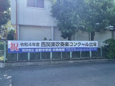 のぼりをいただきました! 投稿: 教頭 (2022/08/31) カテゴリー: クラブ活動 吹奏楽部の西関東大会出場のお祝いで、後援会からのぼりをいただきました。正門に掲示してあります。とても立派で、大会に向けて士気が上がるのぼりです。 Tweet -