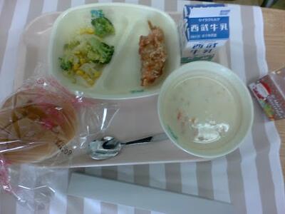 12/22(月)の給食 投稿: 教頭 (2025/12/23) 今日の給食では、フライドチキンとブロッコリーとコーンのサラダは美味しかったです。クラムチャウダーはアサリが入っていて美味しかったです。クリスマスケーキはチョコで美味しかったです。 3-2給食委員 -