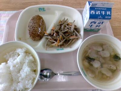 12/23(火)の給食 投稿: 教頭 (08:30) 今日の給食は、ご飯、牛乳、雪だるまのすまし汁、照り焼きハンバーグ、こぶぴらです。今日は今年最後の給食でした。ハンバーグのソースがご飯とよく合う味で美味しかったです。雪だるまのすまし汁は雪だるまが入っていてとても可愛かったです。来年もよろしくお願いします!3−3給食委員 -