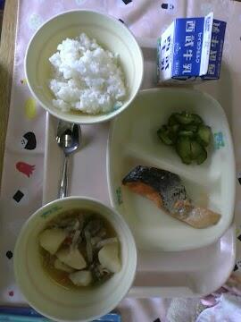 3/19(木)の給食 投稿: 教頭 (07:50) 今日の給食はご飯、牛乳、鮭の塩焼き、肉じゃが、ピリ辛きゅうりでした。鮭の塩焼きも肉じゃがもどちらもご飯と相性が良く美味しかったです。きゅうりも辛すぎず、とても美味しかったです。2-3給食委員 -
