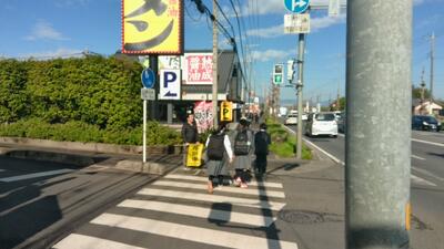 朝の「所沢西高校入口」交差点は、狭い歩道に小中高生や車が激しく行き交う混雑した場所です。