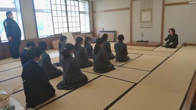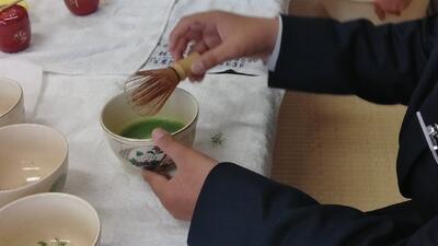 作法を一つずつ教わりながら、昨年度から茶道教室に参加している先輩が点てたお茶を味わいました。