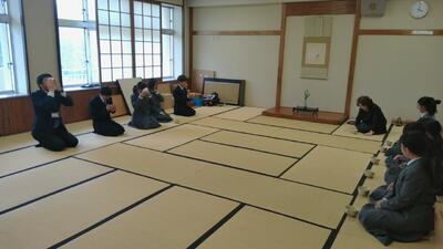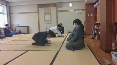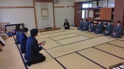 初日の今日は、生徒たちも緊張した面持ちで和室へ。