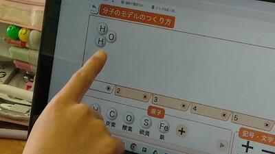 理科ではクロムブックを使い、目に見えない原子や分子の構造を視覚的に整理していました。
