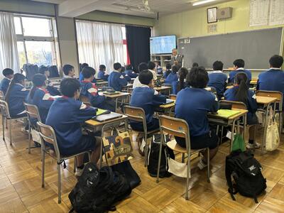 5時間目に全体として体育館にて、6時間目に国ごとの内容について教室でご講演いただきました。これまでの活動について、実体験からいただくお話なので、苦労、成功、失敗、面白エピソードなどが豊富で生徒の皆さんは聞き入っている感じでした。貴重なお話をありがとうございました。