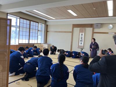 初めての茶道に、緊張の面持ちで作法室へ来る生徒が多く見られました。
